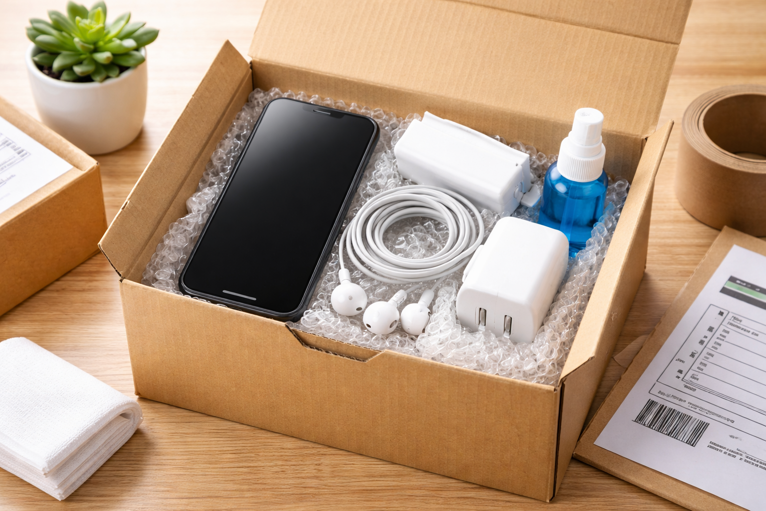 箱・イヤホン・充電ケーブルなど、購入時の付属品が揃っている場合、